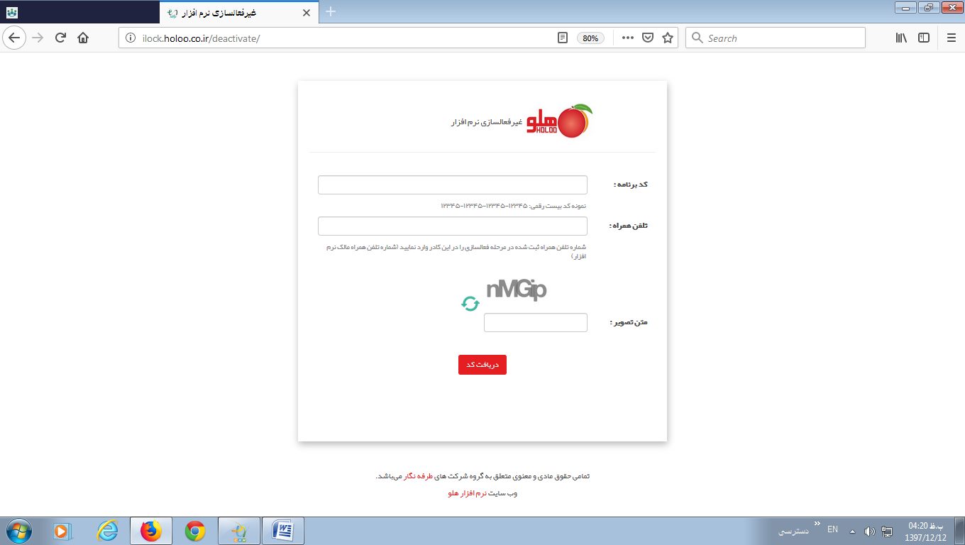 و ورود عبارت ۲۰ کاراکتری و شماره همراه مالک نرمافزار، کدفعالسازی را دریافت کنید.