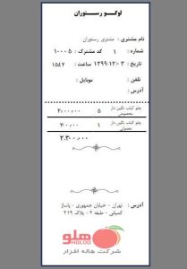 نمونه فاکتور نرم افزار حسابداری رستوران هلو
